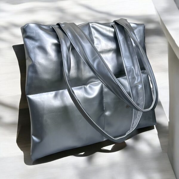 Silver Quilted Shoulder Tote Bag