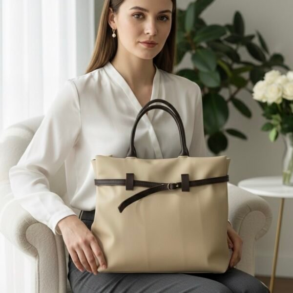 Beige Brown Belted Bag