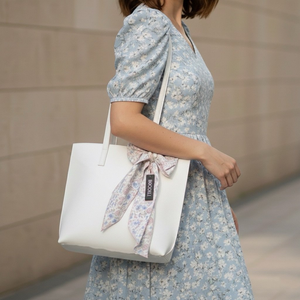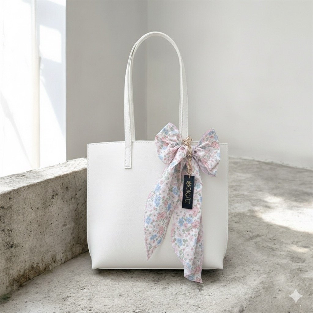White C Bow Tote Bag